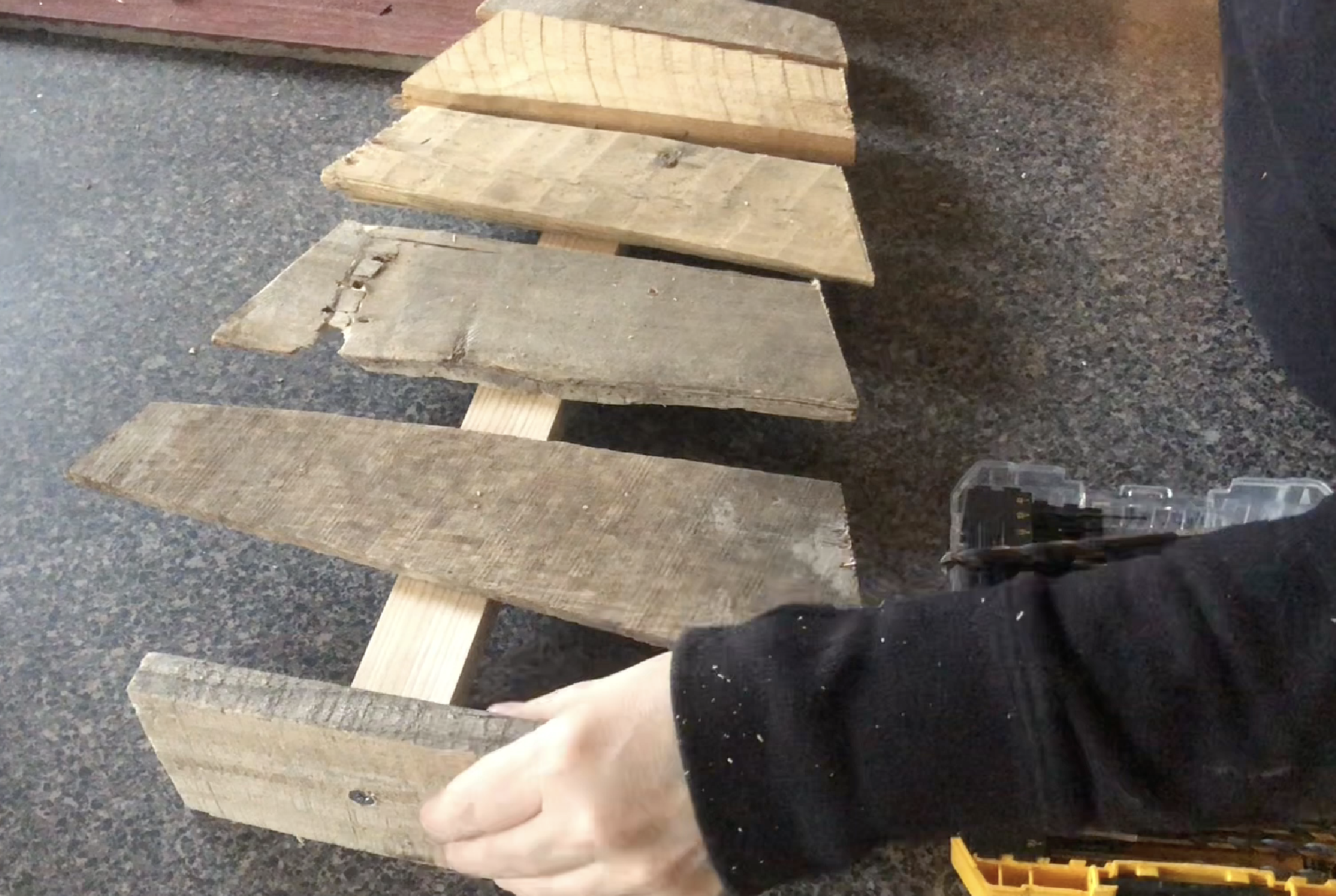 Using a nail gun…put one or two nails to hold the pallet boards in place.